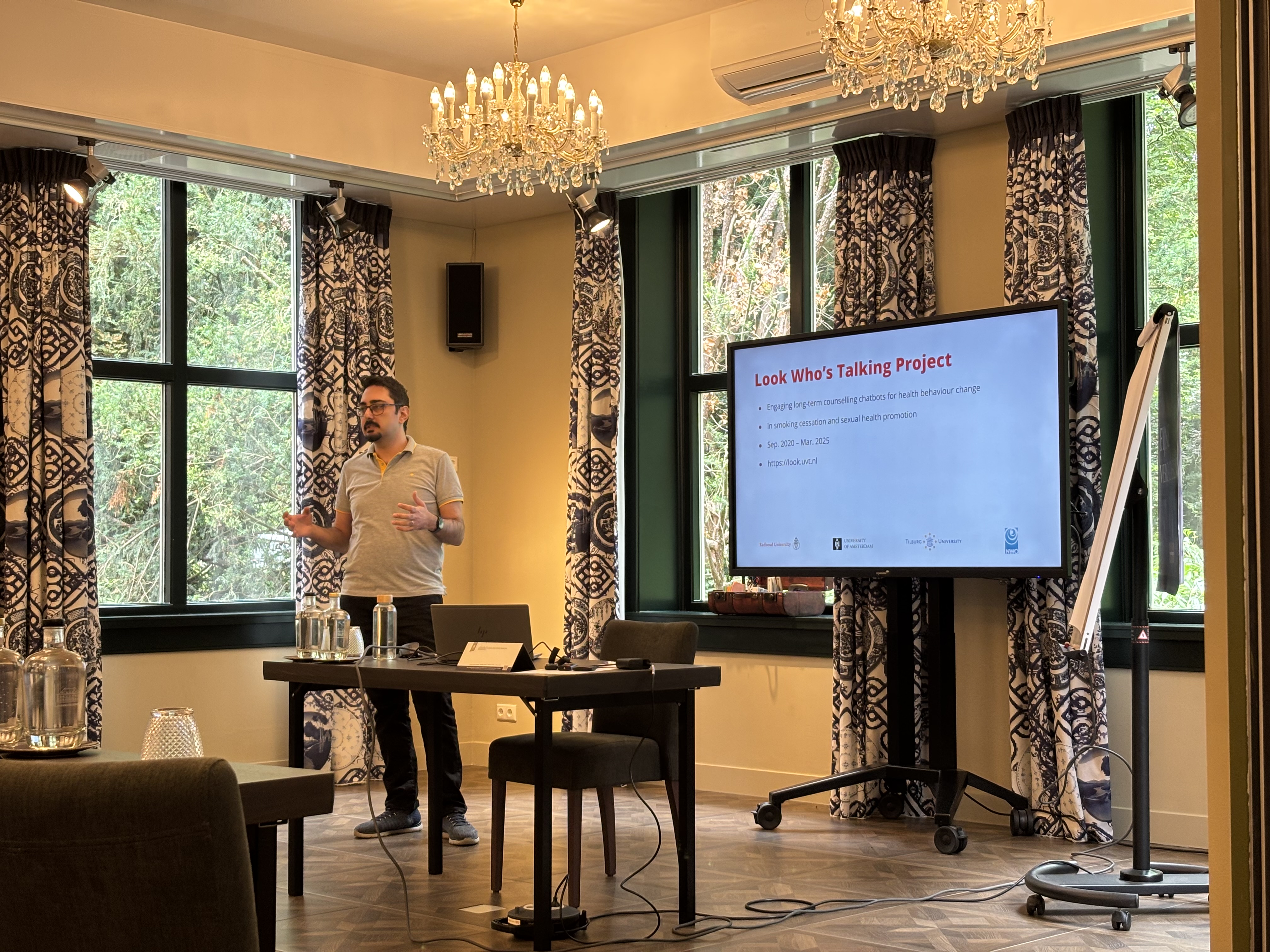 I was invited to give a lecture and workshop as part of the AI & Human Behaviour course at the SIKS graduate school. During my talk, I discussed the developments in conversational agents, with a particular focus on the development and evaluation of engaging long-term chatbots designed to support users in health behaviour change, which was the central theme of my PhD dissertation and the Look Who’s Talking project. We went on to explore the potential benefits and challenges associated with applying large language models in medical contexts, along with considerations around their controlled use. The workshop component provided me with an opportunity to demonstrate the usage of our hybrid chatbot development software, HyLECA, followed by the audience members attempting to design and create their own chatbots based on the software’s architecture. Overall, it was a valuable experience to contribute to this multidisciplinary exploration of AI’s role in behaviour change, and to engage with other researchers in the area interested in the technical, ethical, and societal implications of these rapidly evolving technologies.
